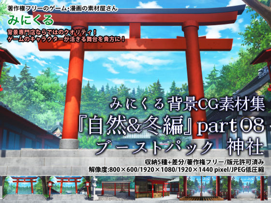 神社のアングル違い素材5点+差分を入れた、お得なおまとめパックです。